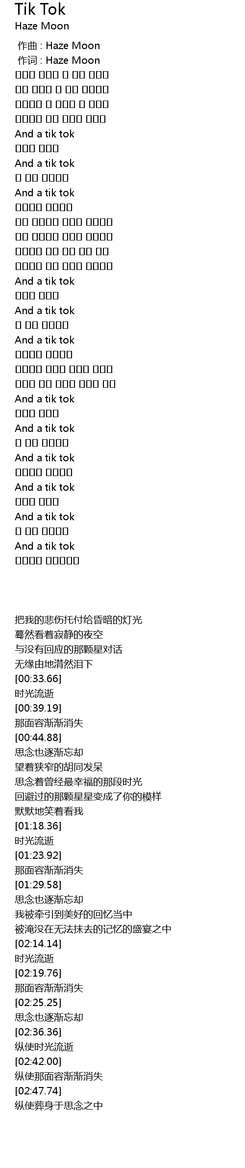 作词 : Haze Moon |