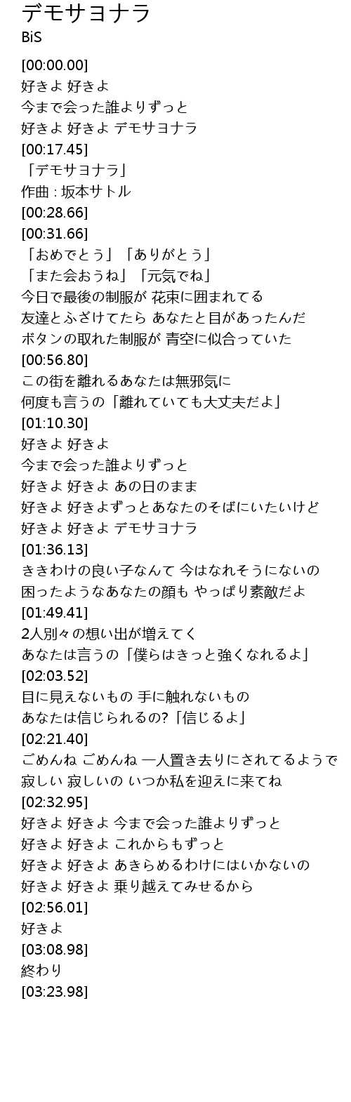 | [00:19.66] | 「デモサヨナラ」 |