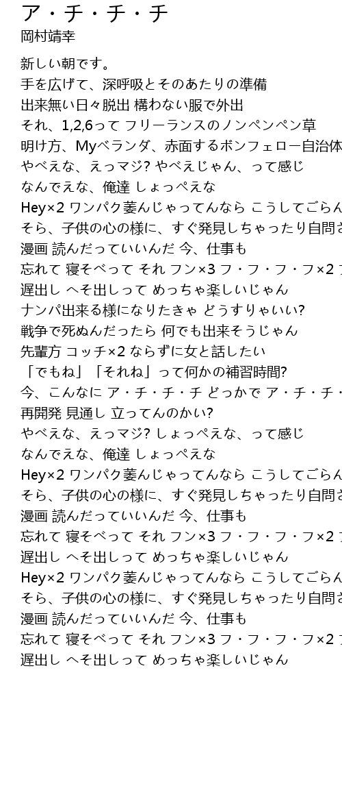 | 忘れて 寝そべって それ フン×3 フ・フ・フ・フ×2 フン | |
