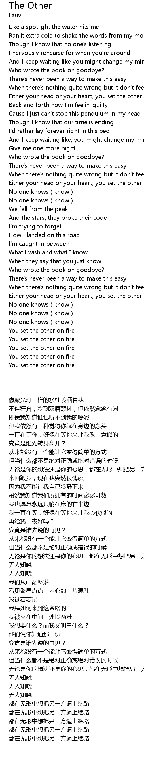 | [00:45.13] | Either your head or your heart, you set the other on fire |