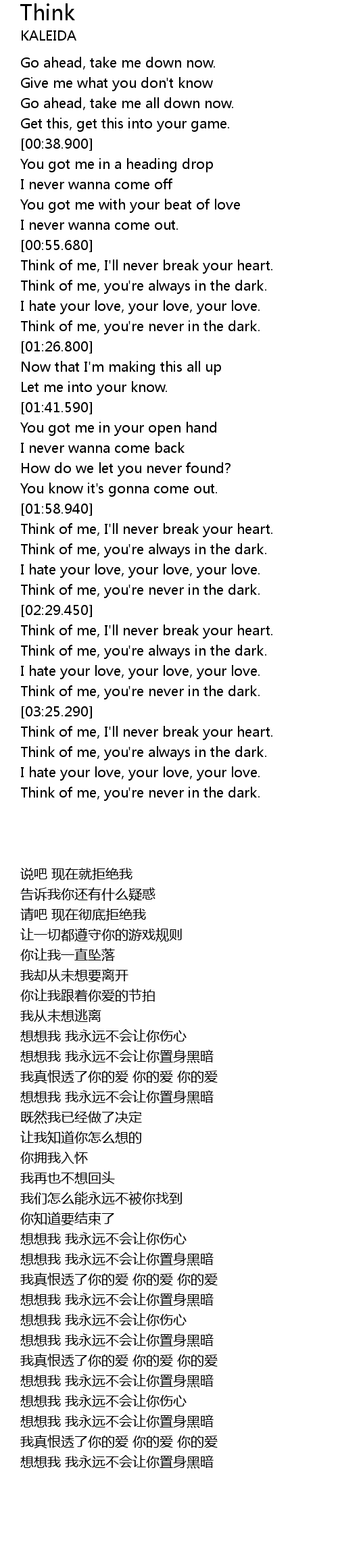 Think of me, I'll never break your heart. |
