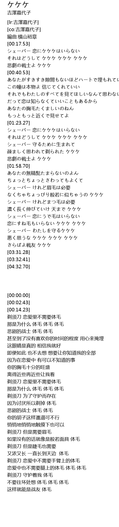 | [03:01.61] | 恋にすね毛もいらない ケケケ ケケケ |