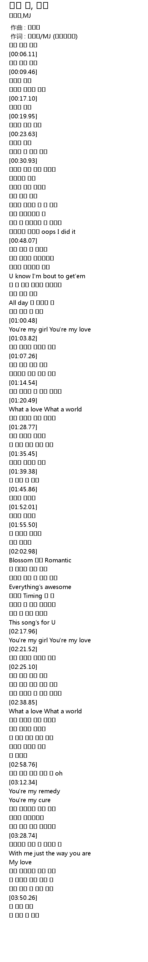 | [00:01.00] | 作词 : 김진환/MJ (써니사이드) |