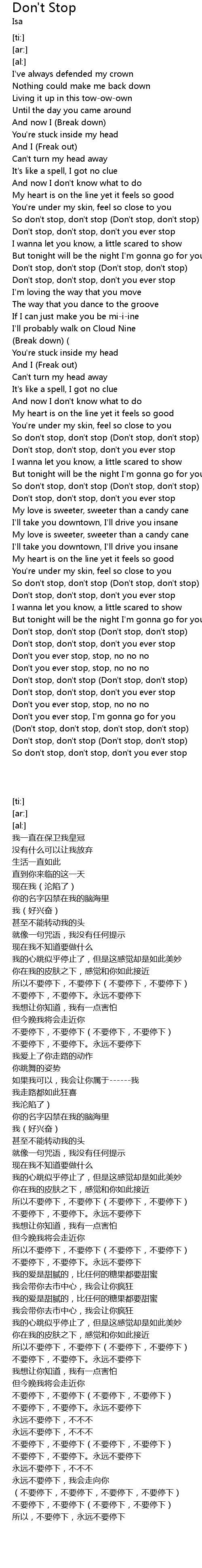 | [00:38.28] | 所以不要停下,不要停下(不要停下,不要停下) |