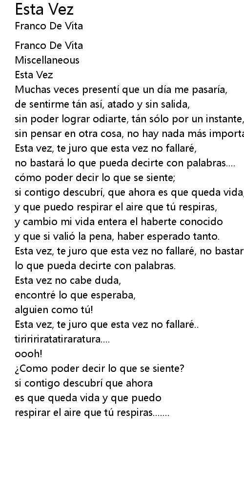 | 歌曲 | Esta Vez |