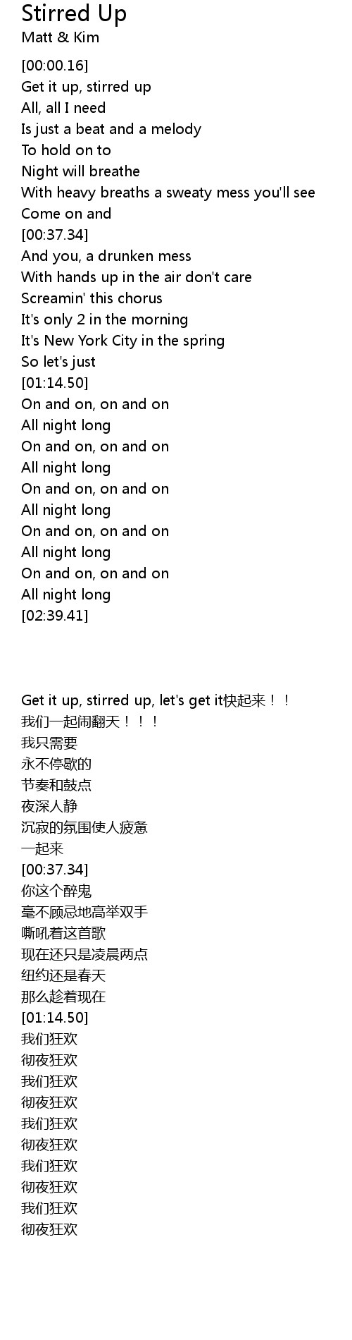 [00:00.16] Get it up, stirred up, let's get it快起来!!