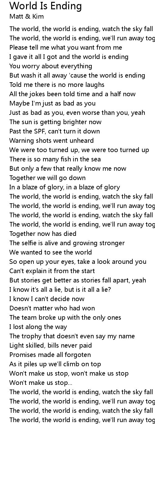 But wash it all away 'cause the world is ending