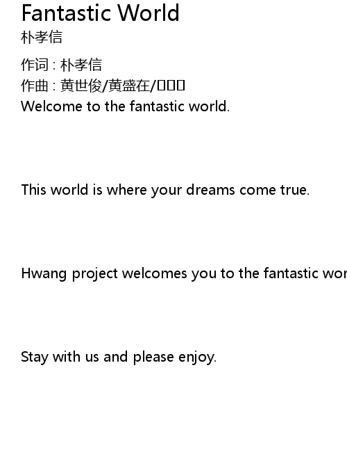 | Hwang project welcomes you to the fantastic world. | |