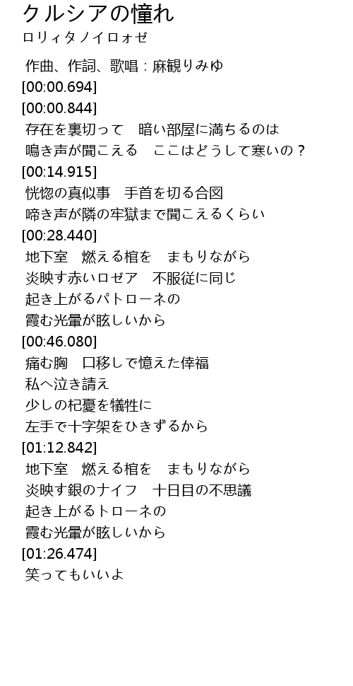 | [00:01.696] | 存在を裏切って 暗い部屋に満ちるのは |