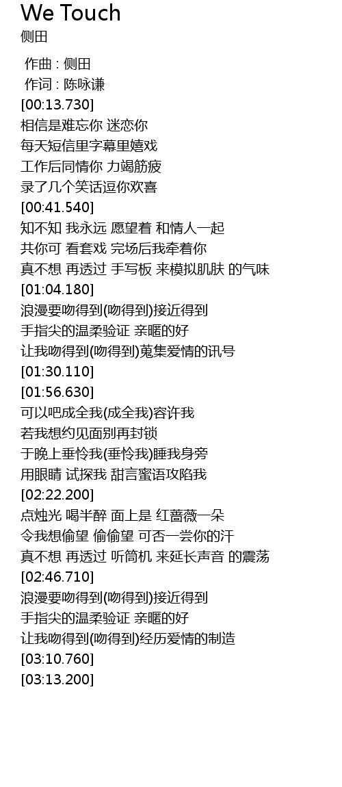 | [01:13.660] | 手指尖的温柔验证 亲暱的好 |
