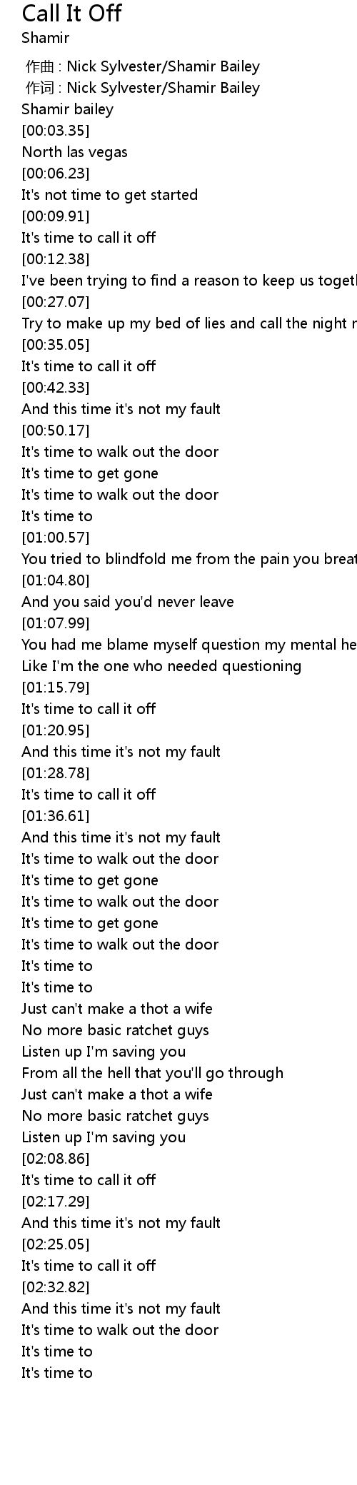 | [02:28.36] | It's time to call it off |