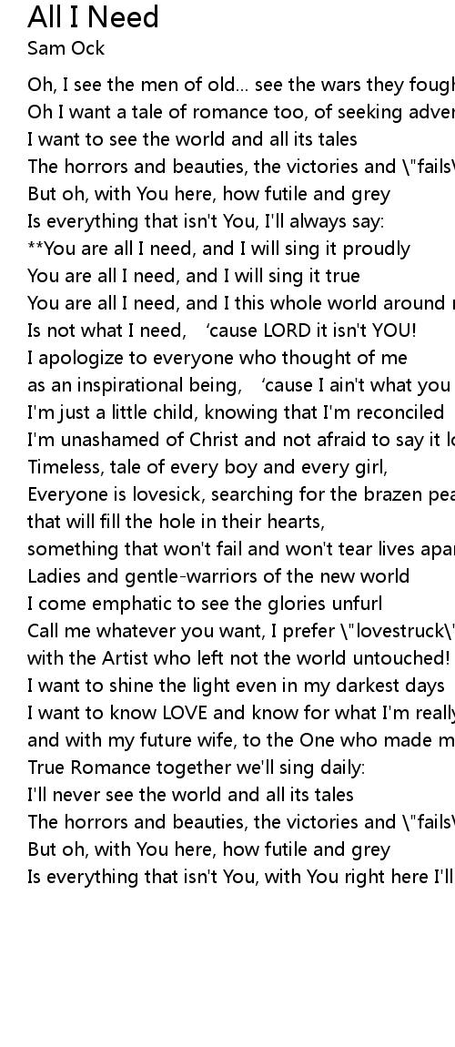 | You are all I need, and I will sing it true | |