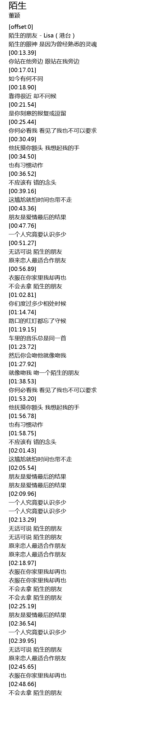 | [00:01.82] | 陌生的朋友 - Lisa(港台) |