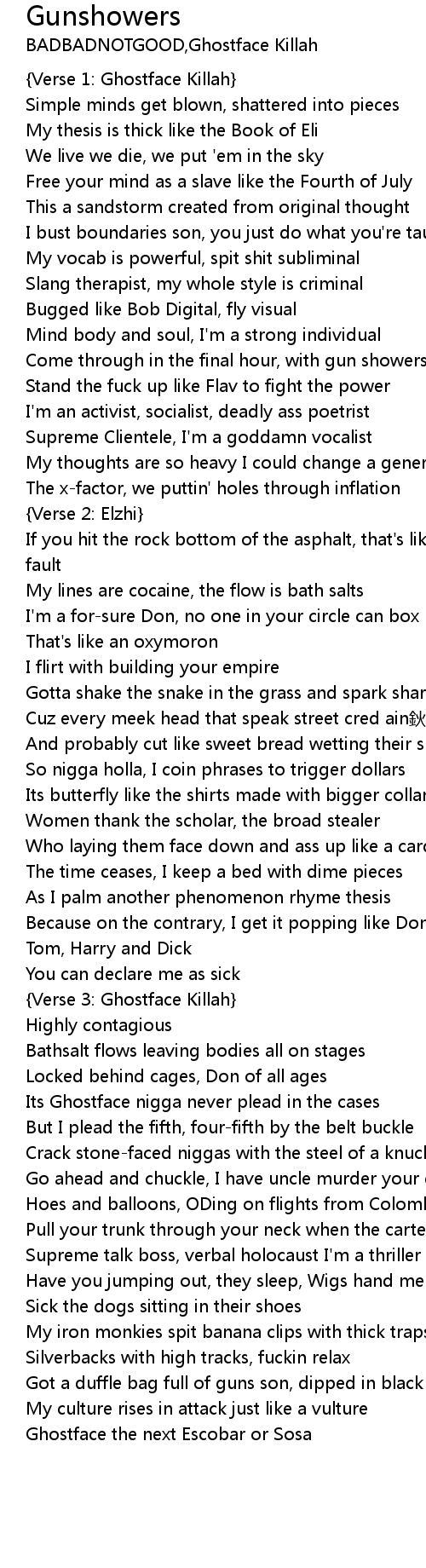 | [02:13.00] | Verse 3: Ghostface Killah |