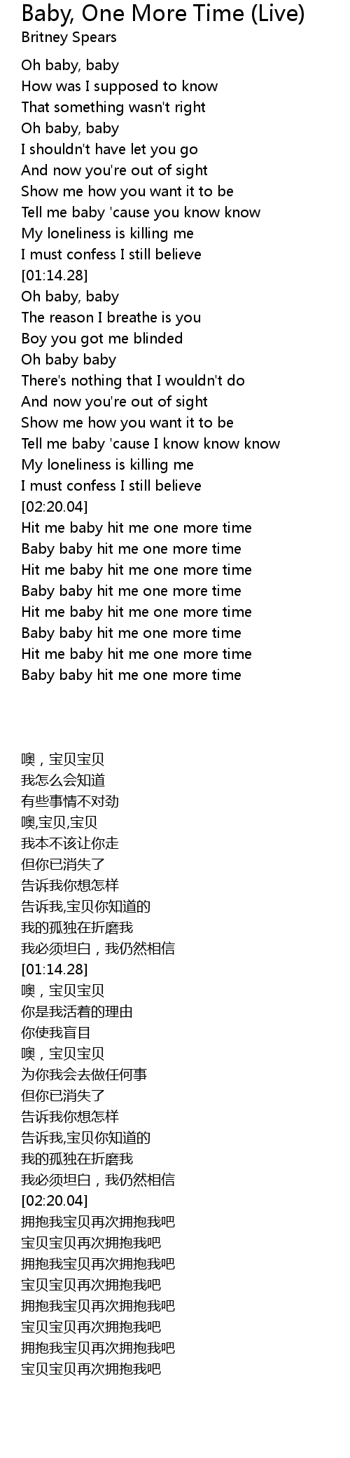 Baby baby hit me one more time |