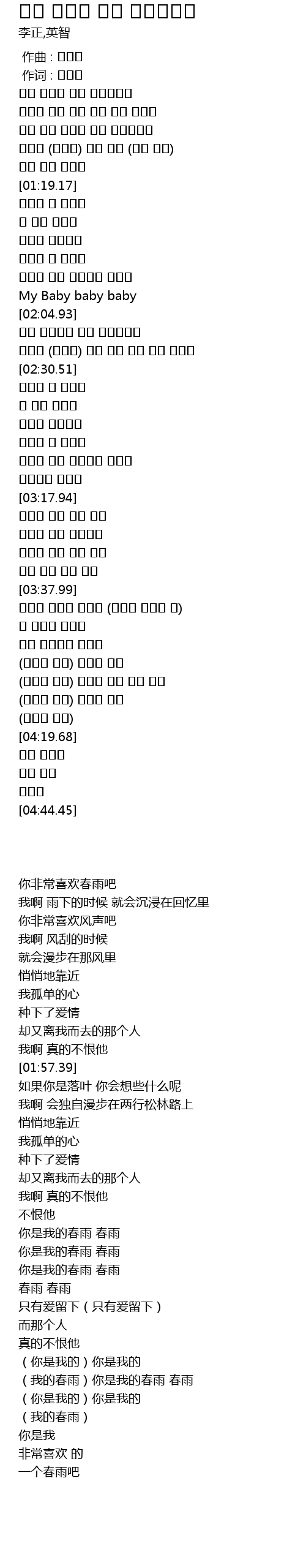 | [03:30.88] | 봄비 봄비 봄비 봄비 |