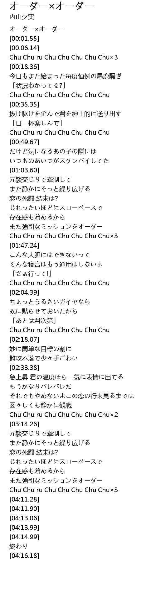 | [01:36.56] | Chu Chu ru Chu Chu Chu Chu Chu×3 |