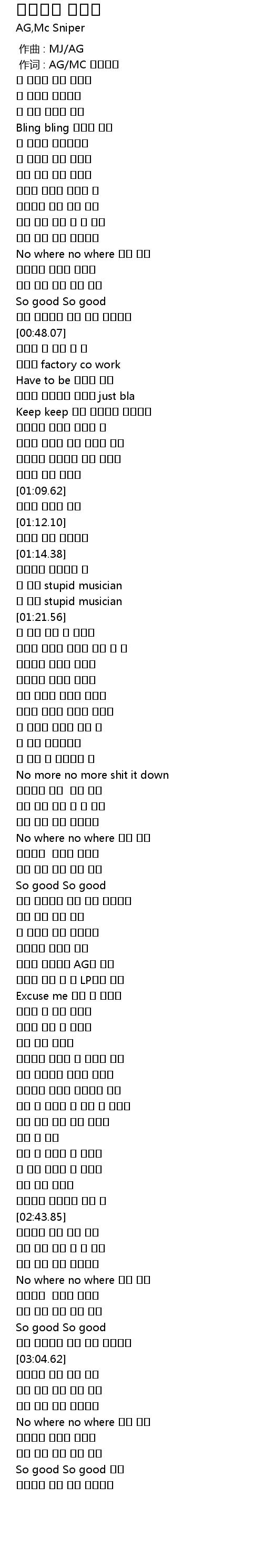 | [00:01.00] | 作词 : AG/MC 스나이퍼 |