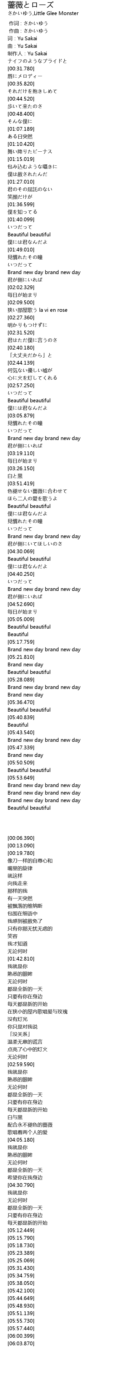 | [00:06.390] | 词:Yu Sakai |