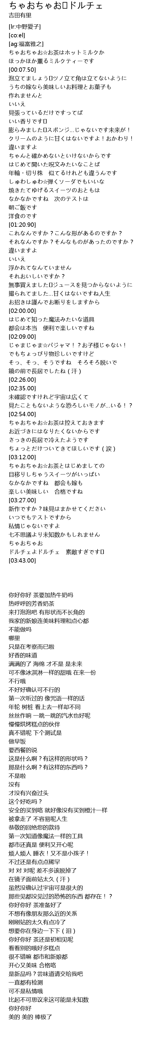 | [03:12.10] | ちゃおちゃお☆お茶とはじめましての |