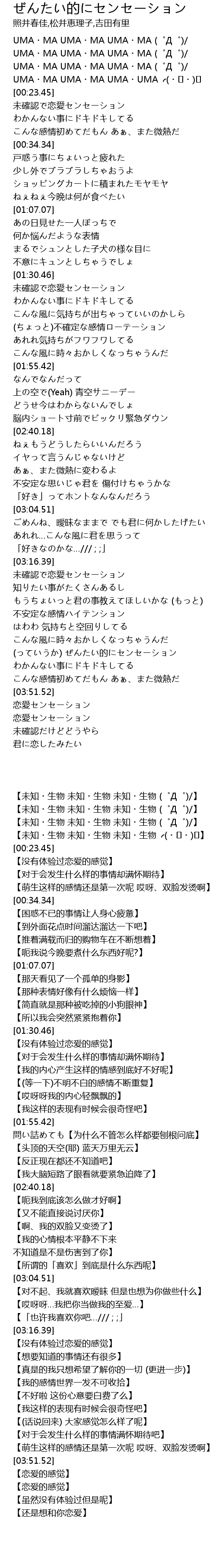 | [03:39.97] | (っていうか) ぜんたい的にセンセーション |