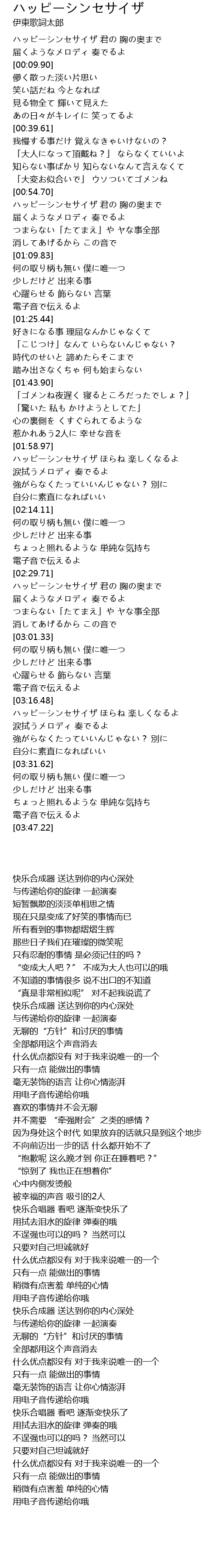 ハッピーシンセサイザ 君の 胸の奥まで |
