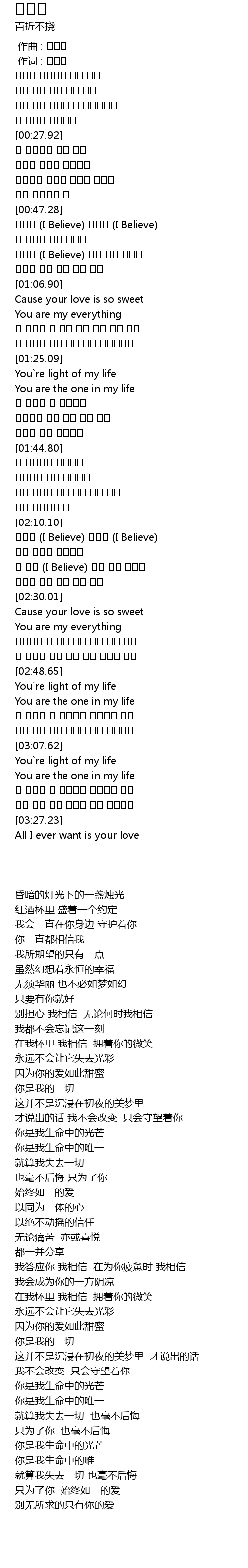 | [03:19.68] | 只为了你 始终如一的爱 |