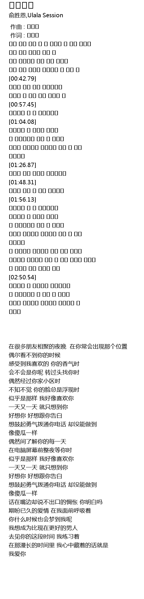 | [02:12.06] | 好想你 好想跟你告白 |