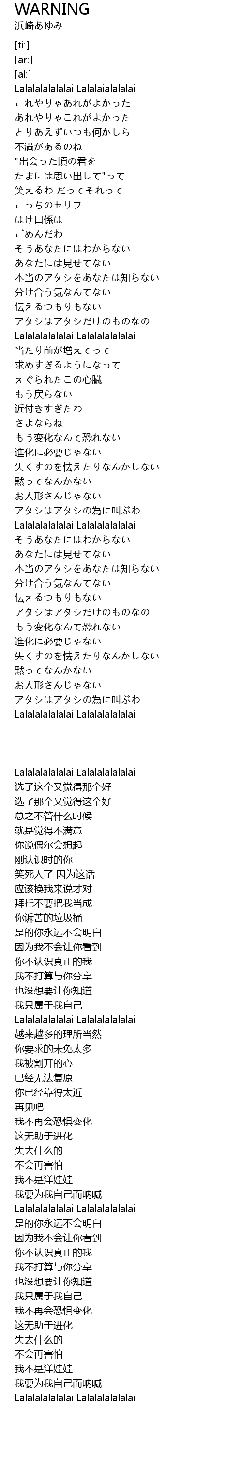 | [03:28.92] | Lalalalalalalai Lalalalalalalai |