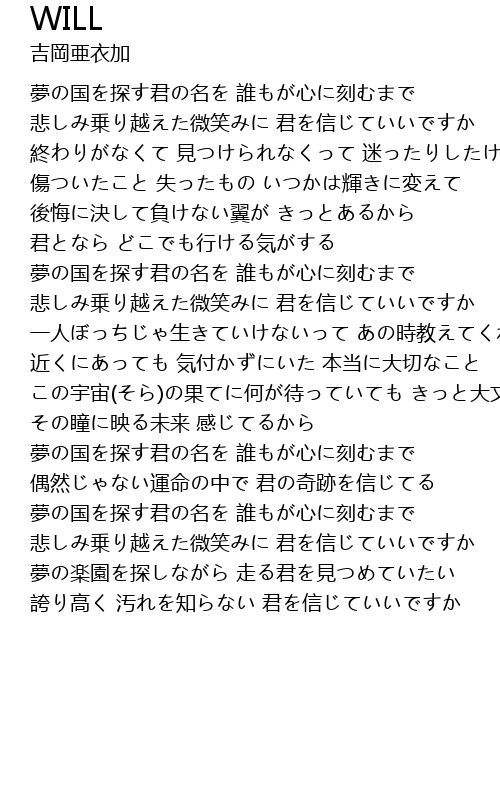 | 歌曲 | WILL |