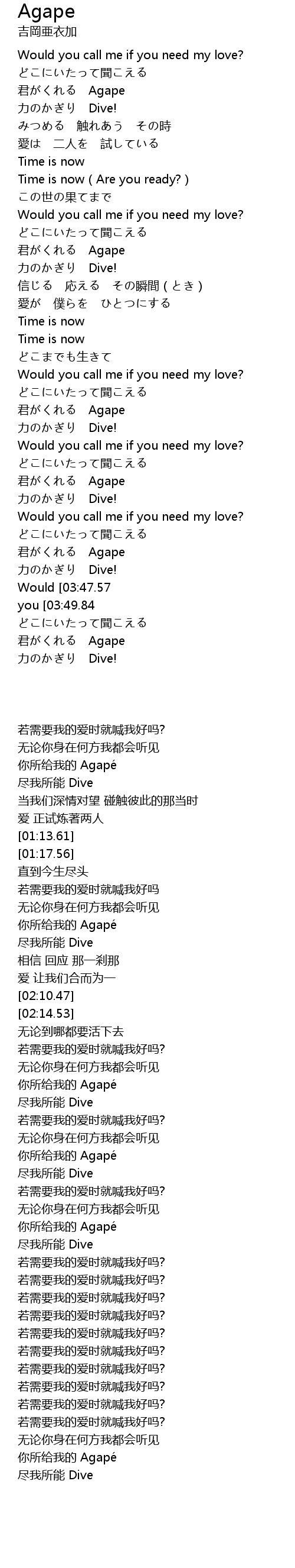 | [03:22.90] | 君がくれる Agape |