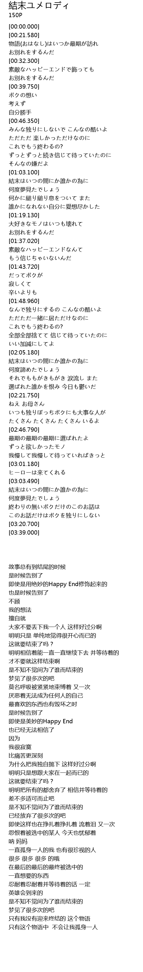 | [00:33.360] | 素敵なハッピーエンドで飾っても |