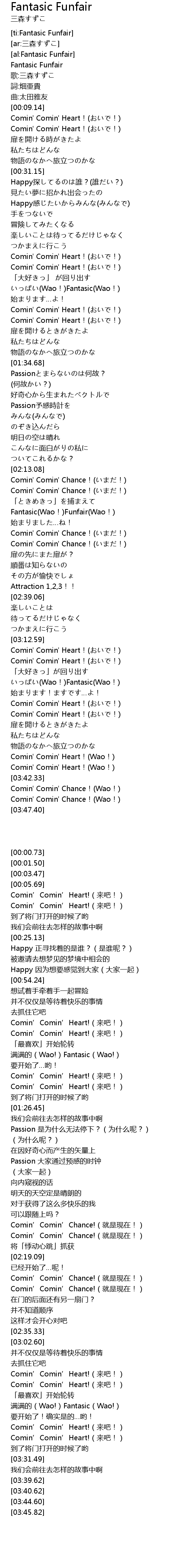 | [02:19.09] | Fantasic(Wao!)Funfair(Wao!) |