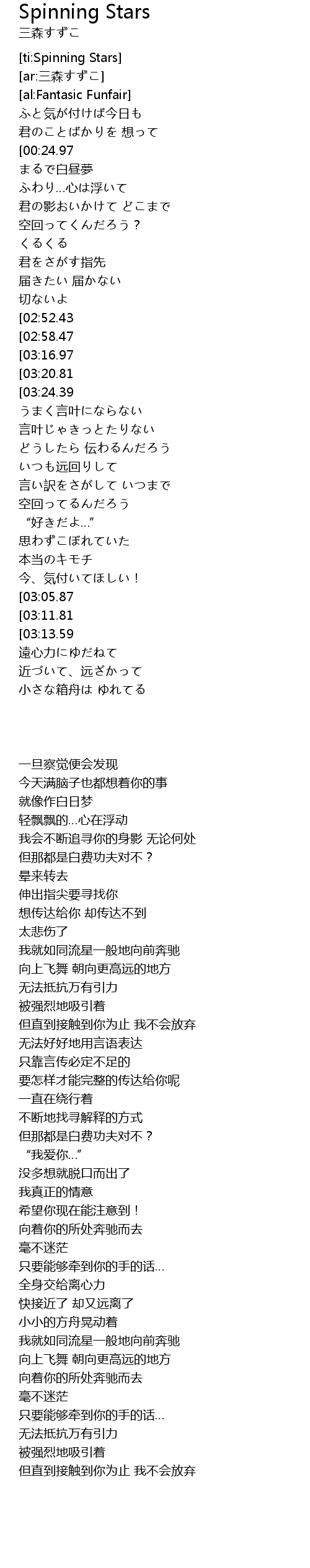 | [00:49.45][02:52.43] | 駆け巡る わたし 流星みたい |