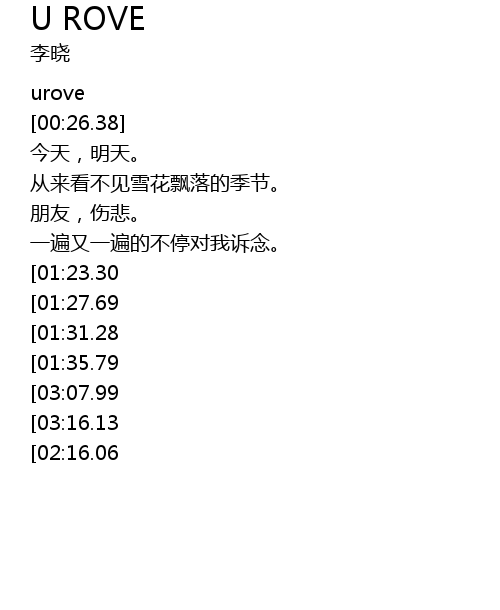 | [03:26.07][03:07.99][01:57.86][01:40.24] | urove urove |