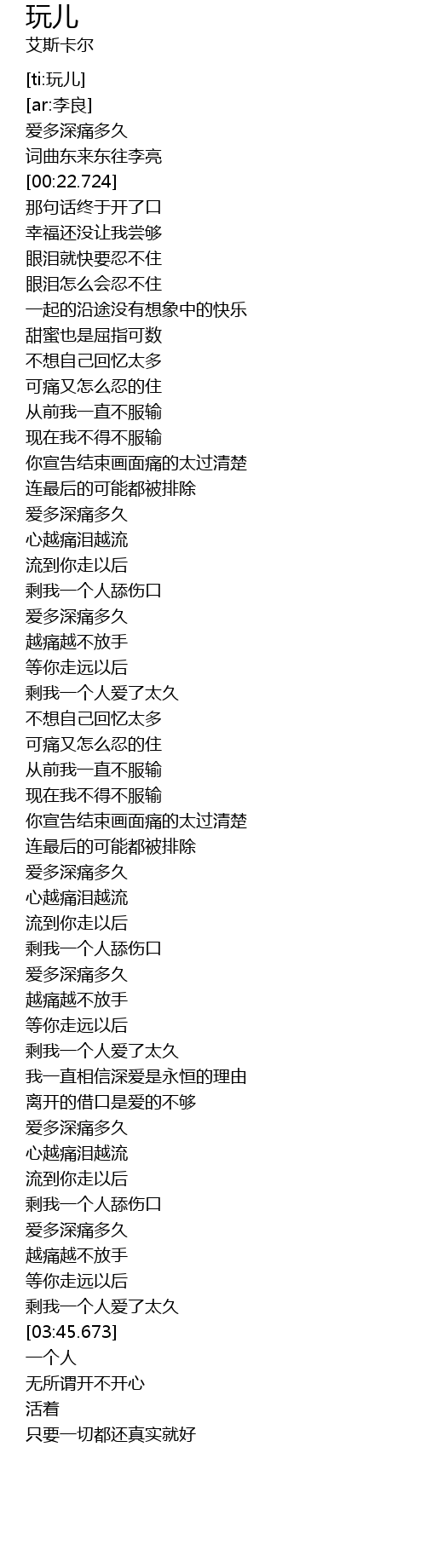 | [03:19.376] | ài duō shēn tòng duō jiǔ |