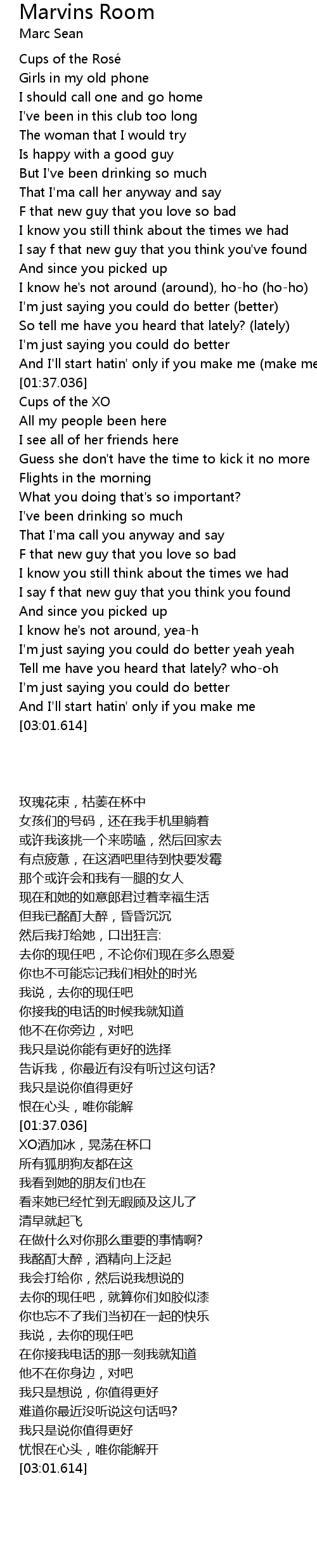 | 歌曲 | Marvins Room |