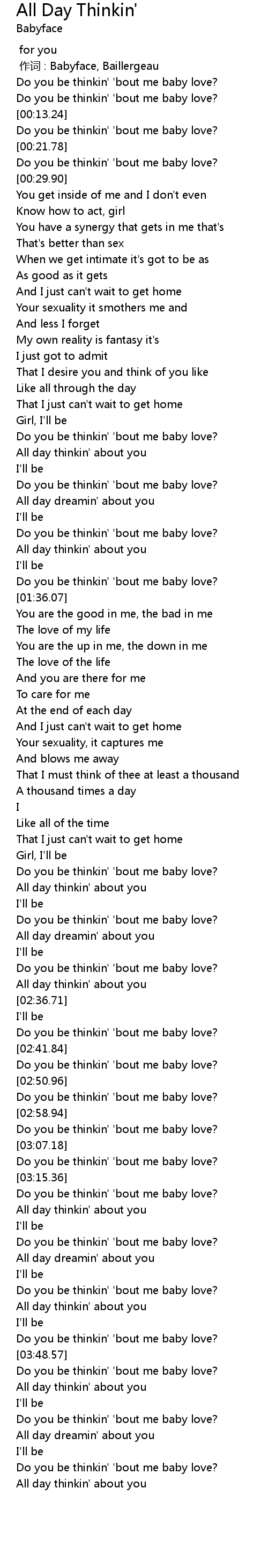 | [02:21.36] | Do you be thinkin' ' bout me baby love? |