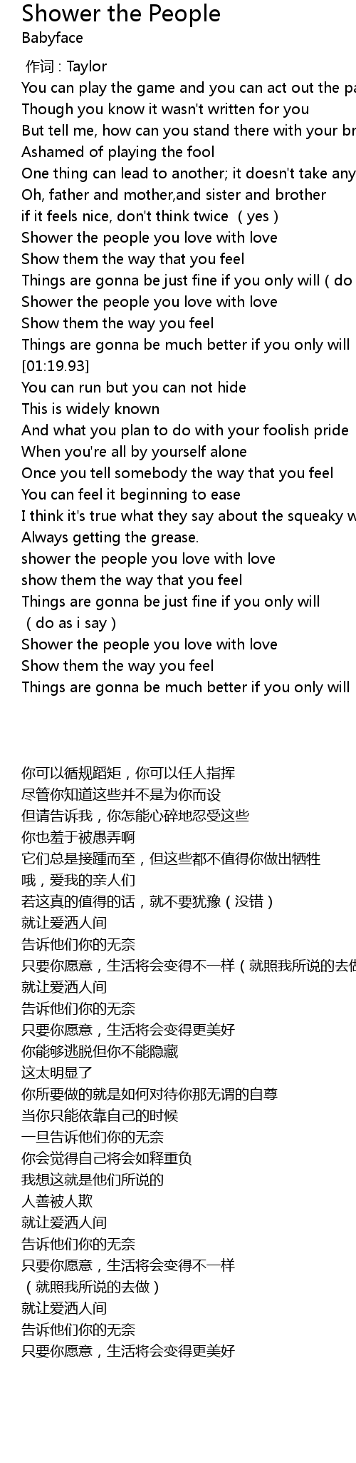 | [02:19.96] | Shower the people you love with love |