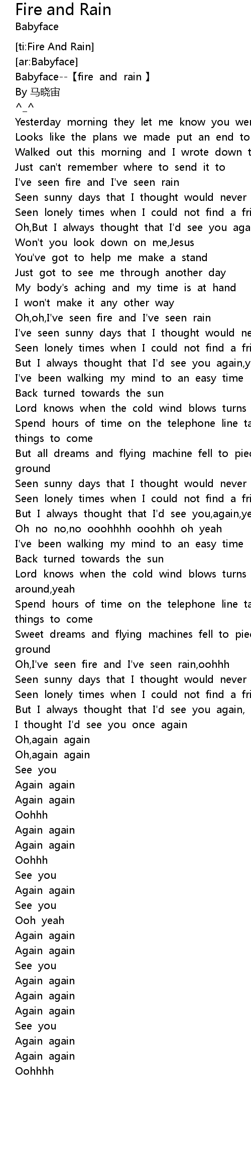 | [00:01.283] | Babyface--【fire and rain 】 |