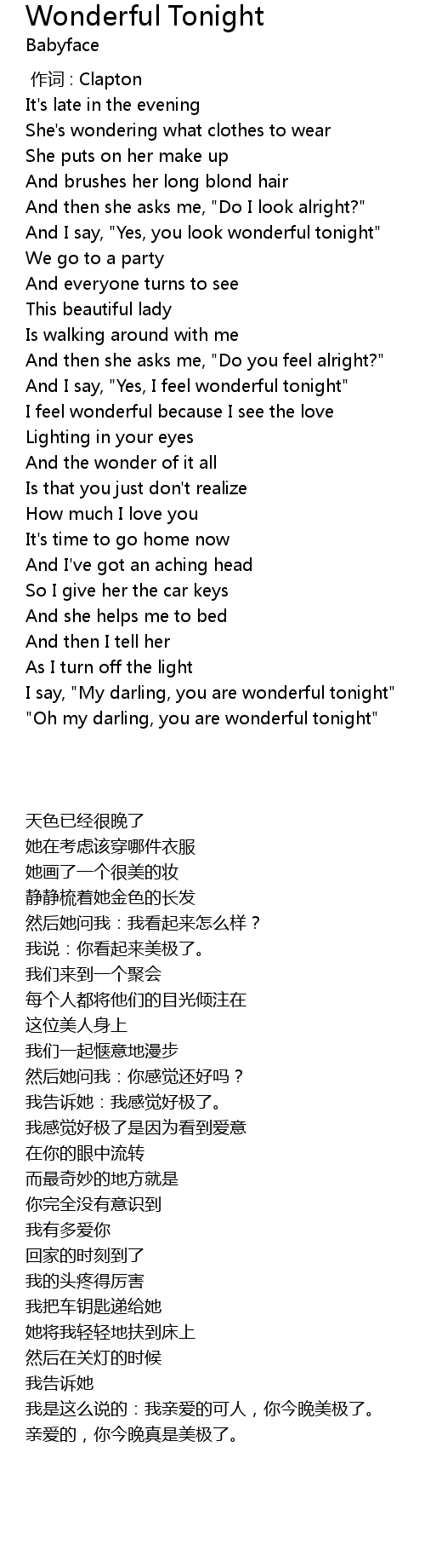 | [02:55.300] | I say, " My darling, you are wonderful tonight" |