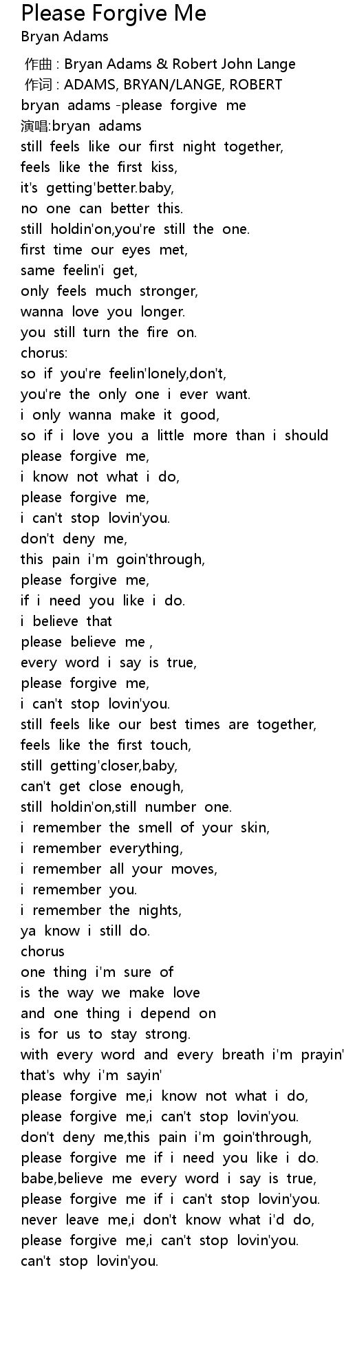 | [04:14.886] | please forgive me,i can't stop lovin'you. |