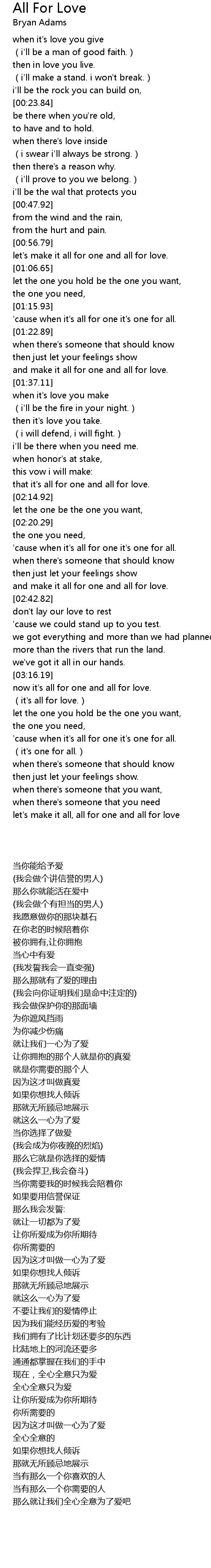 | [04:13.11] | let' s make it all, all for one and all for love |