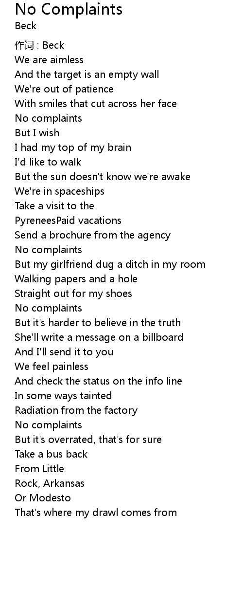 | 歌曲 | No Complaints |