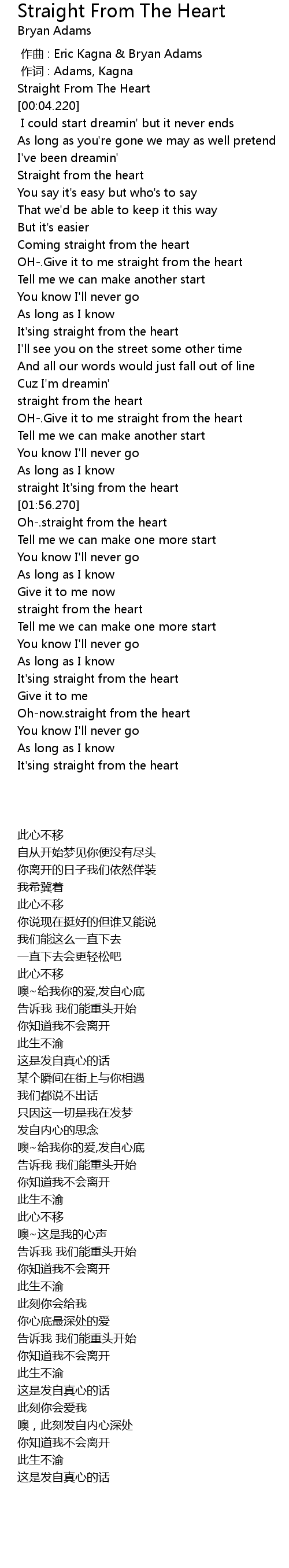 | [00:49.700] | OH. Give it to me straight from the heart |