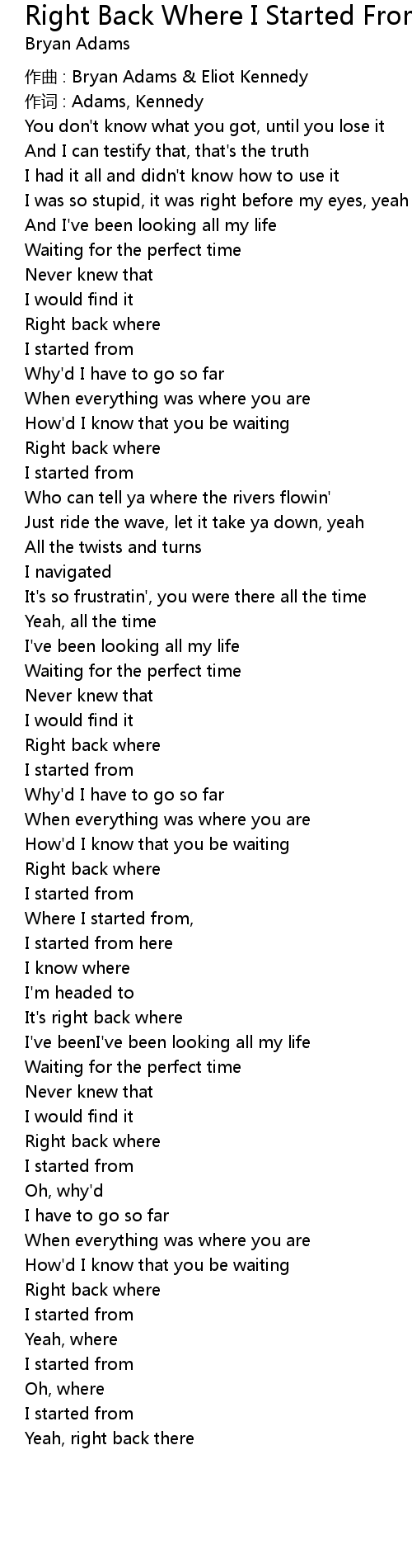 | 歌曲 | Right Back Where I Started From |