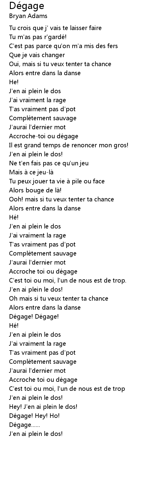 | [00:48.85] | J' en ai plein le dos! |
