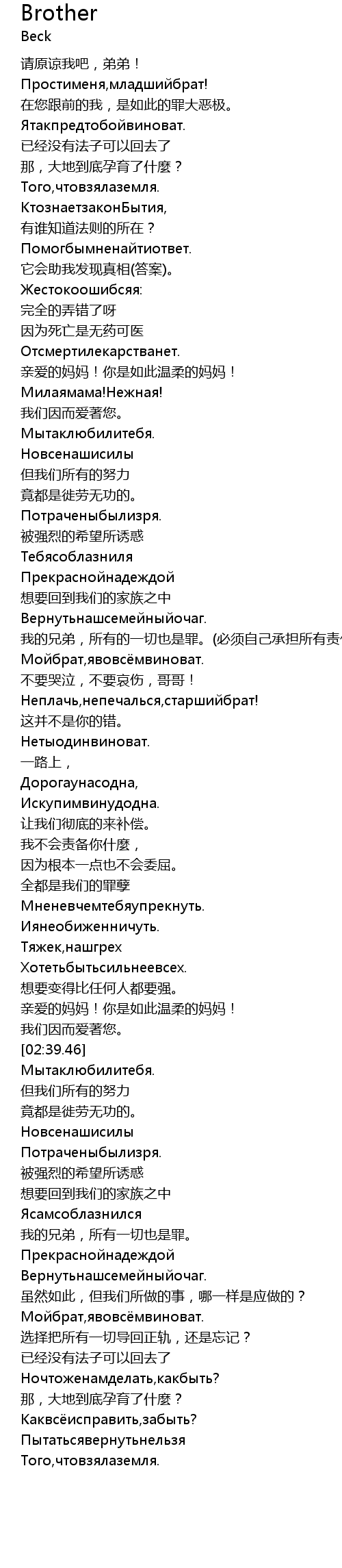 | [03:04.67] | wǒ de xiōng dì, suǒ yǒu yī qiè yě shì zuì. |