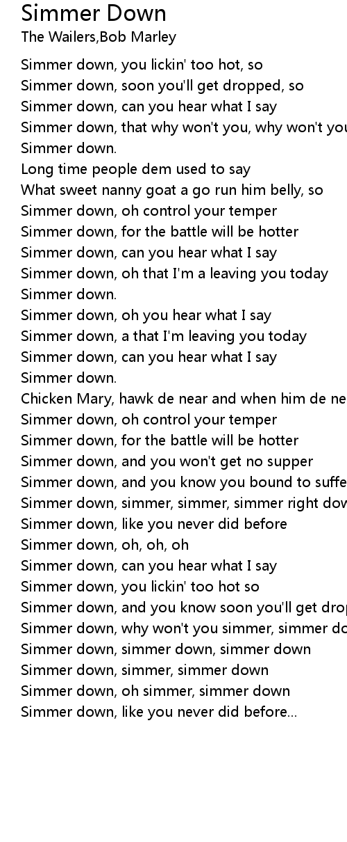 Simmer down, simmer, simmer, simmer right down |