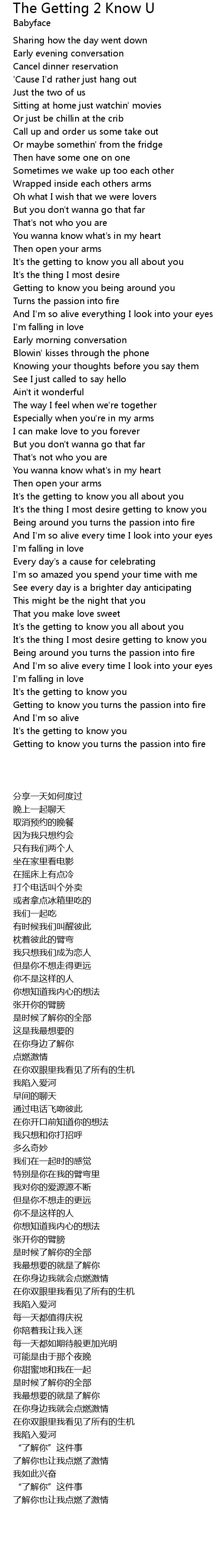 The Getting 2 Know U 歌词